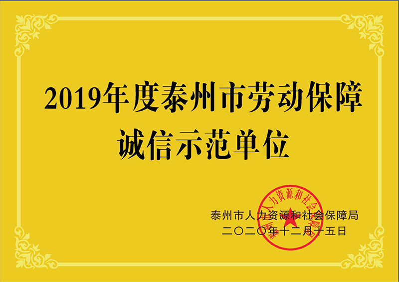 泰州市勞動(dòng)勞動(dòng)保障誠(chéng)信示范單位